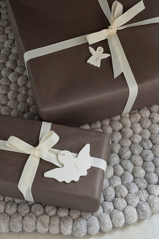 Sæt bånd i og pynt gaver, træ eller lærkegrene med din hjemmelavede pynt.