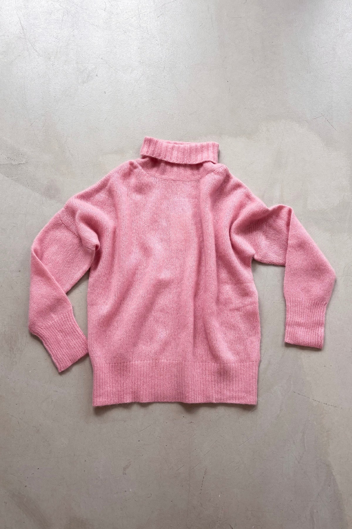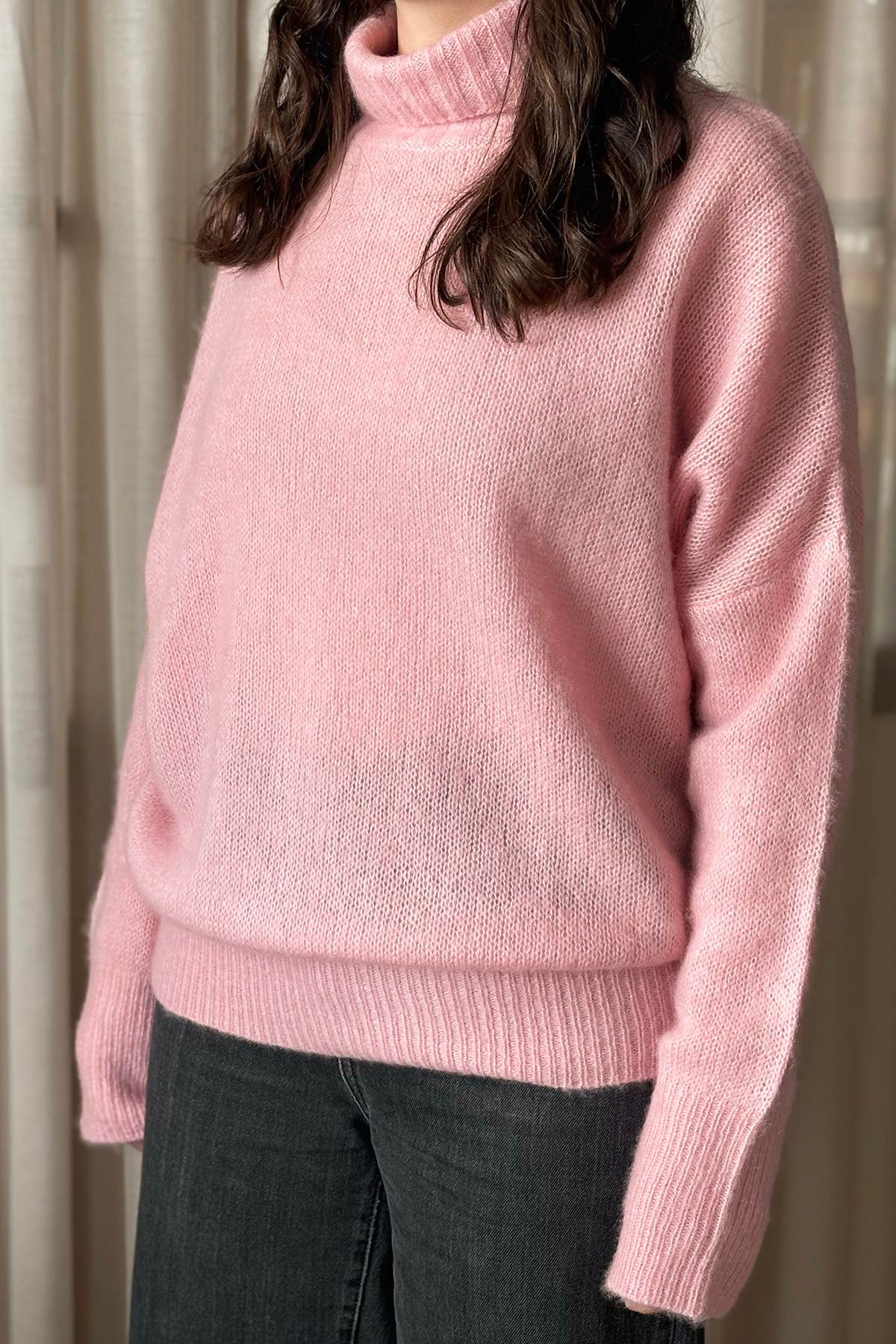 HANNE er en lækker rullekravesweater med casual drop-down skuldre, lange ærmer og en skøn løs pasform i den blødeste cashmere og silke blanding.