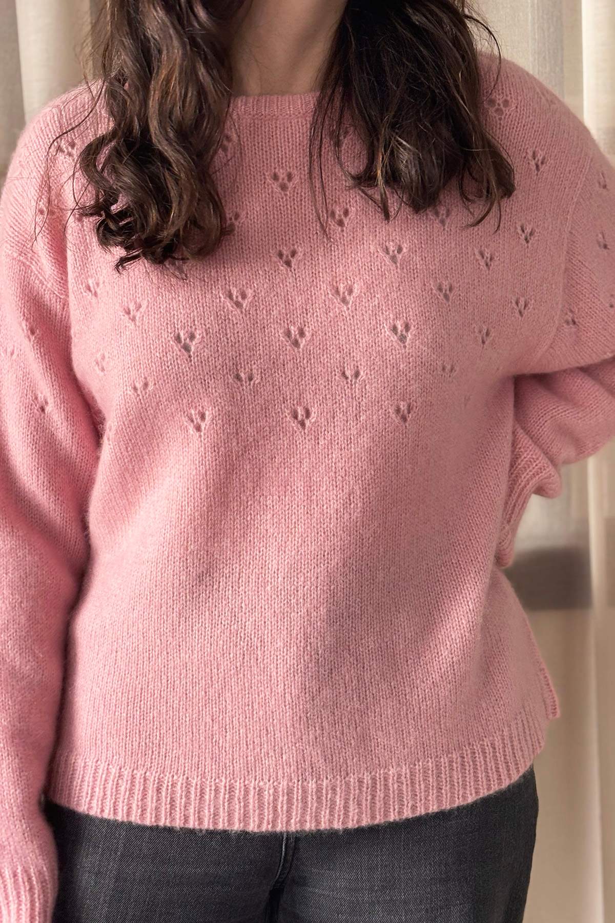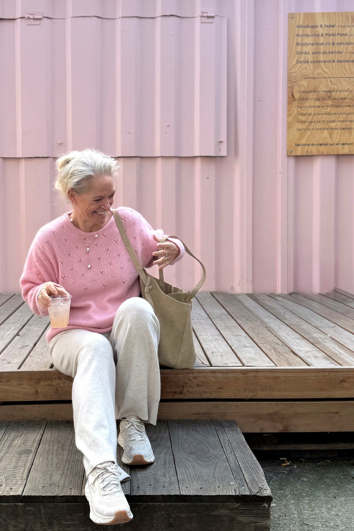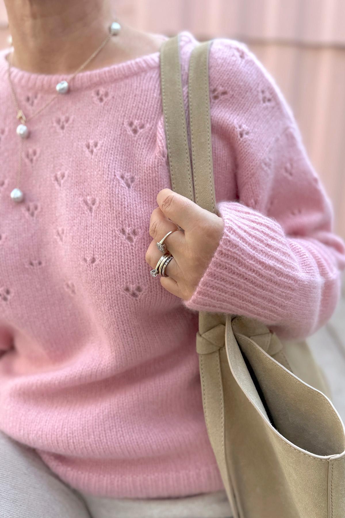 Få fingrene i en unik, håndlavet limited edition-style i fin lyserød cashmere/silke. Der findes kun få stk. af hver – i størrelse M – først til mølle.