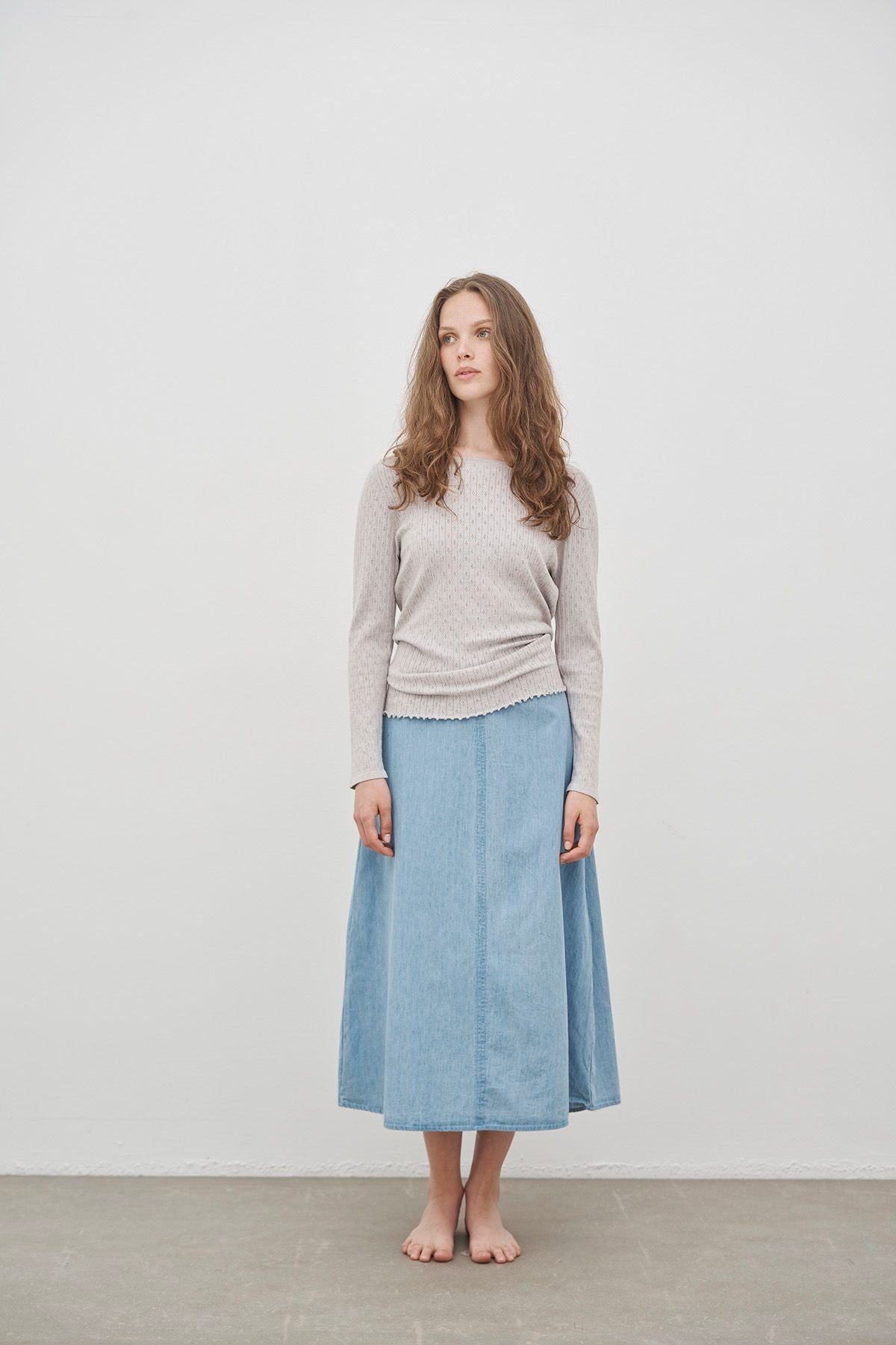 Nederdelen er fremstillet i blød, økologisk bomuldsdenim og kan styles med en casual top til hverdag, med blonder til fest – eller gå all in på denim med en overdel fra samme serie.
