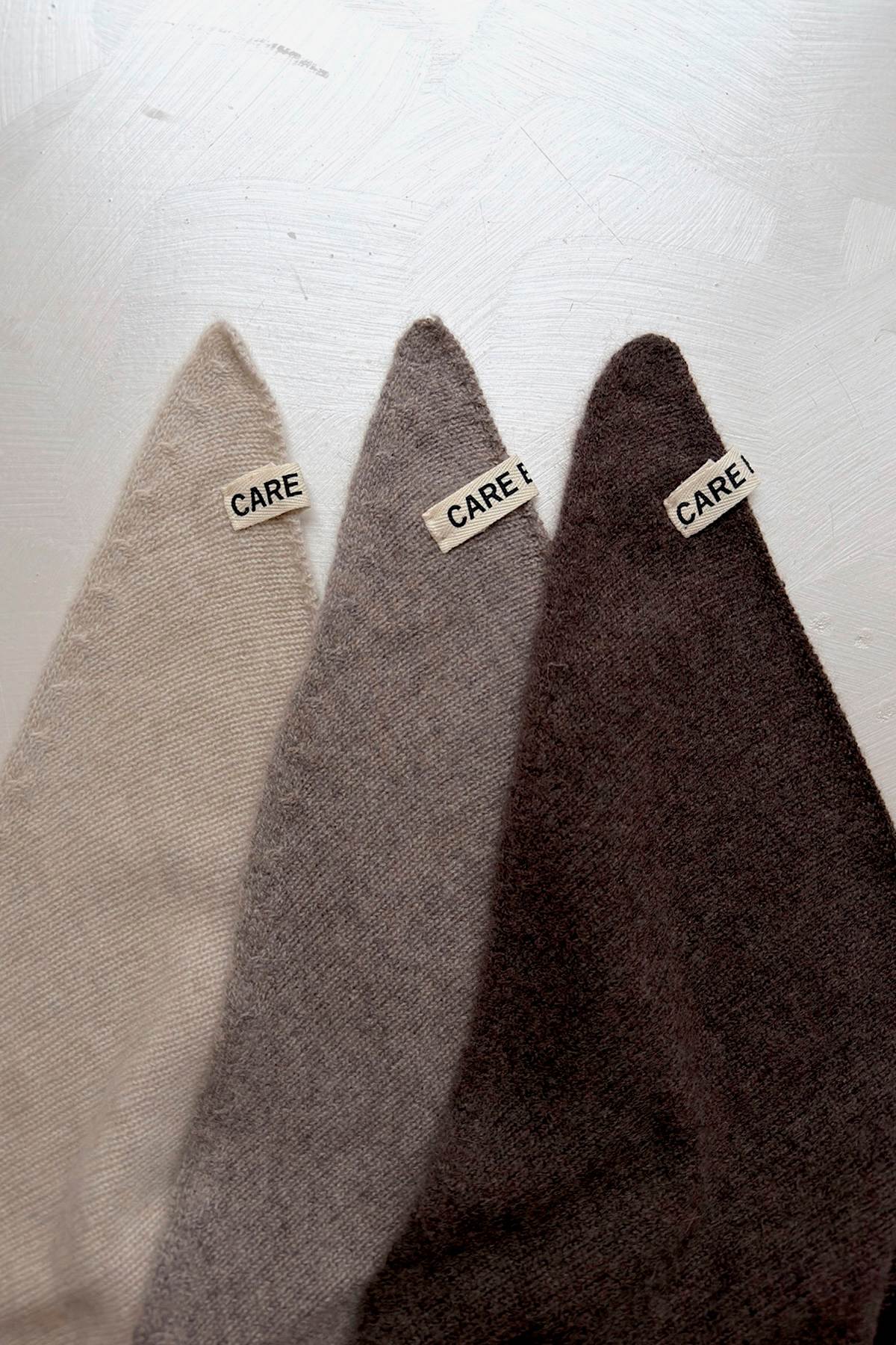 Klassisk og tidløst trekantet tørklæde fremstillet i 100 % håndlavet luksus cashmere.
