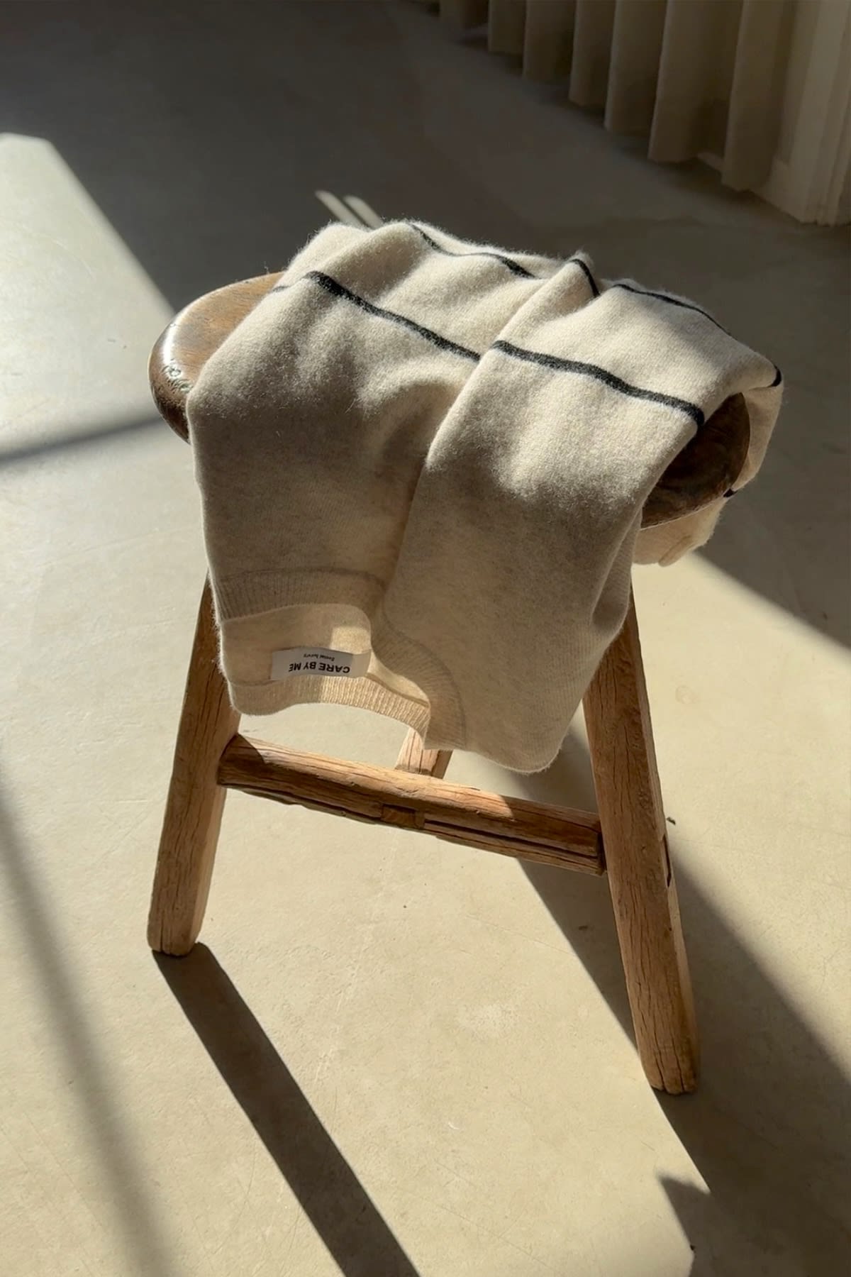 Cool og casual striktrøje i ren, håndlavet cashmere med smalle striber, der giver et minimalistisk præg.