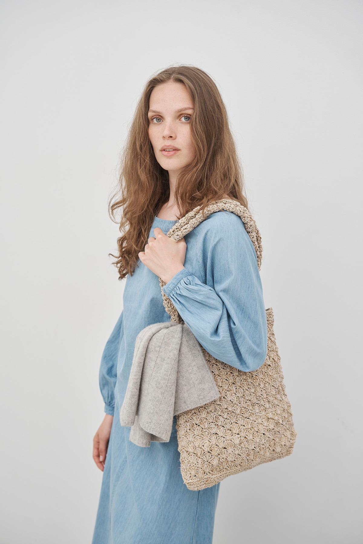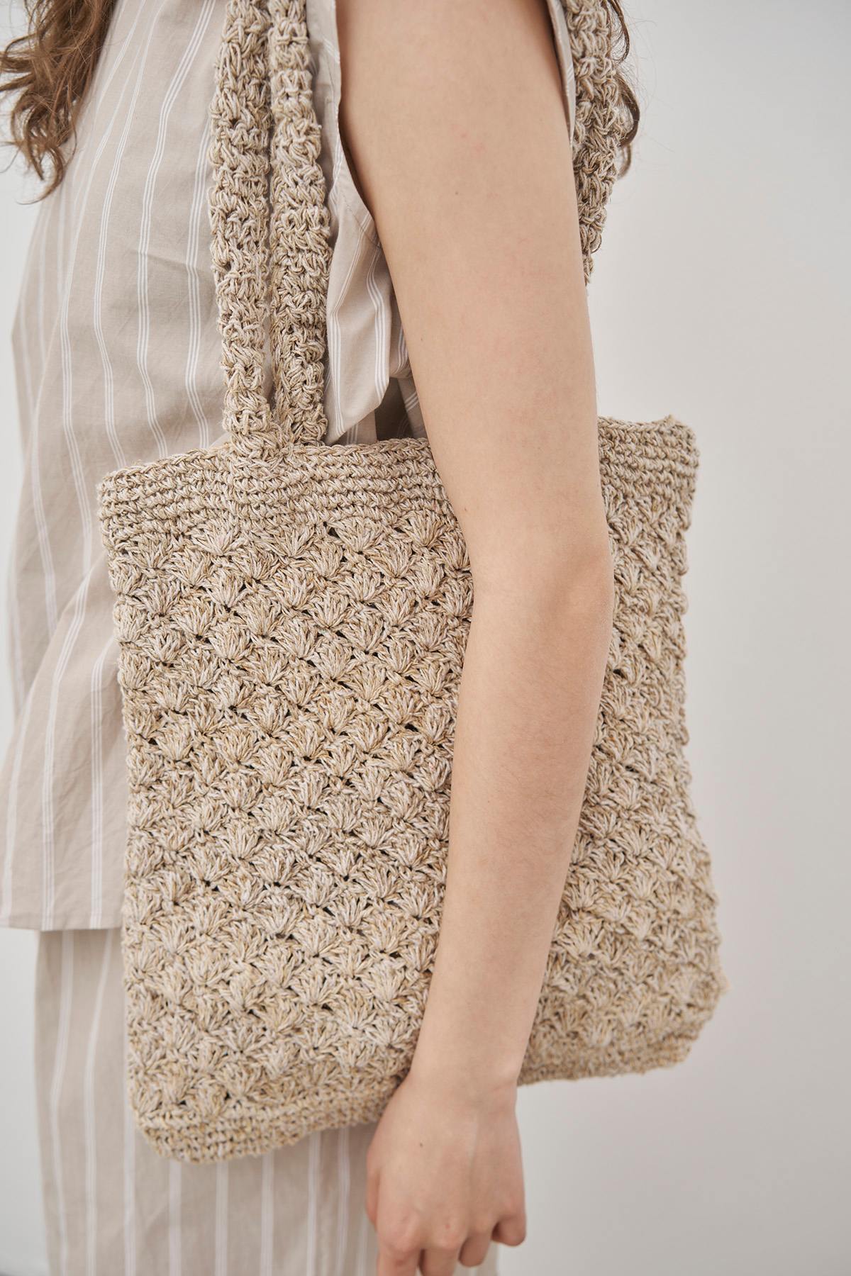Tasken er hæklet i hånden af hamp og bomuld, og er perfekt til alt fra strandturen til en tur på et af sommerens markeder samt til hverdagsbrug hele året rundt.