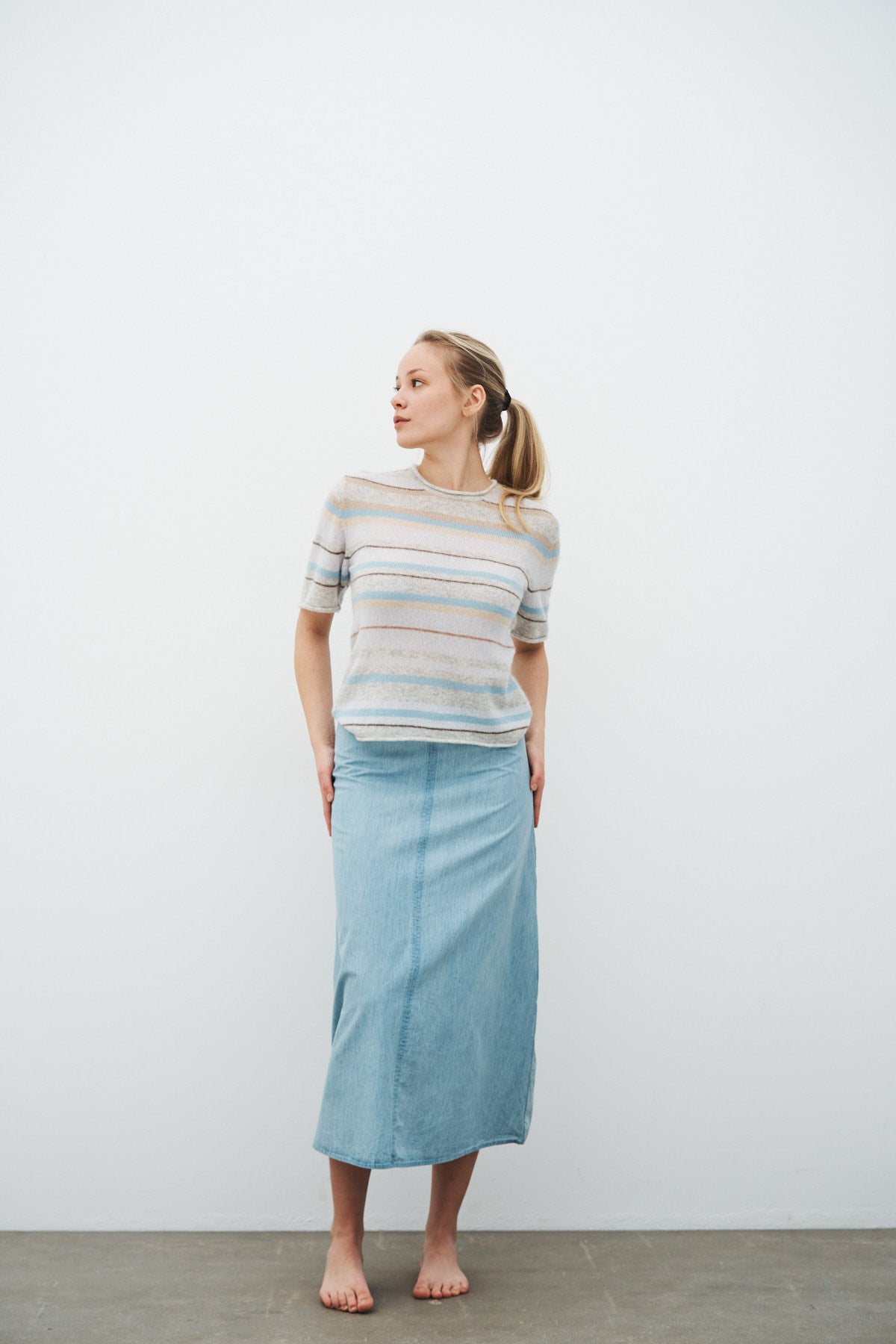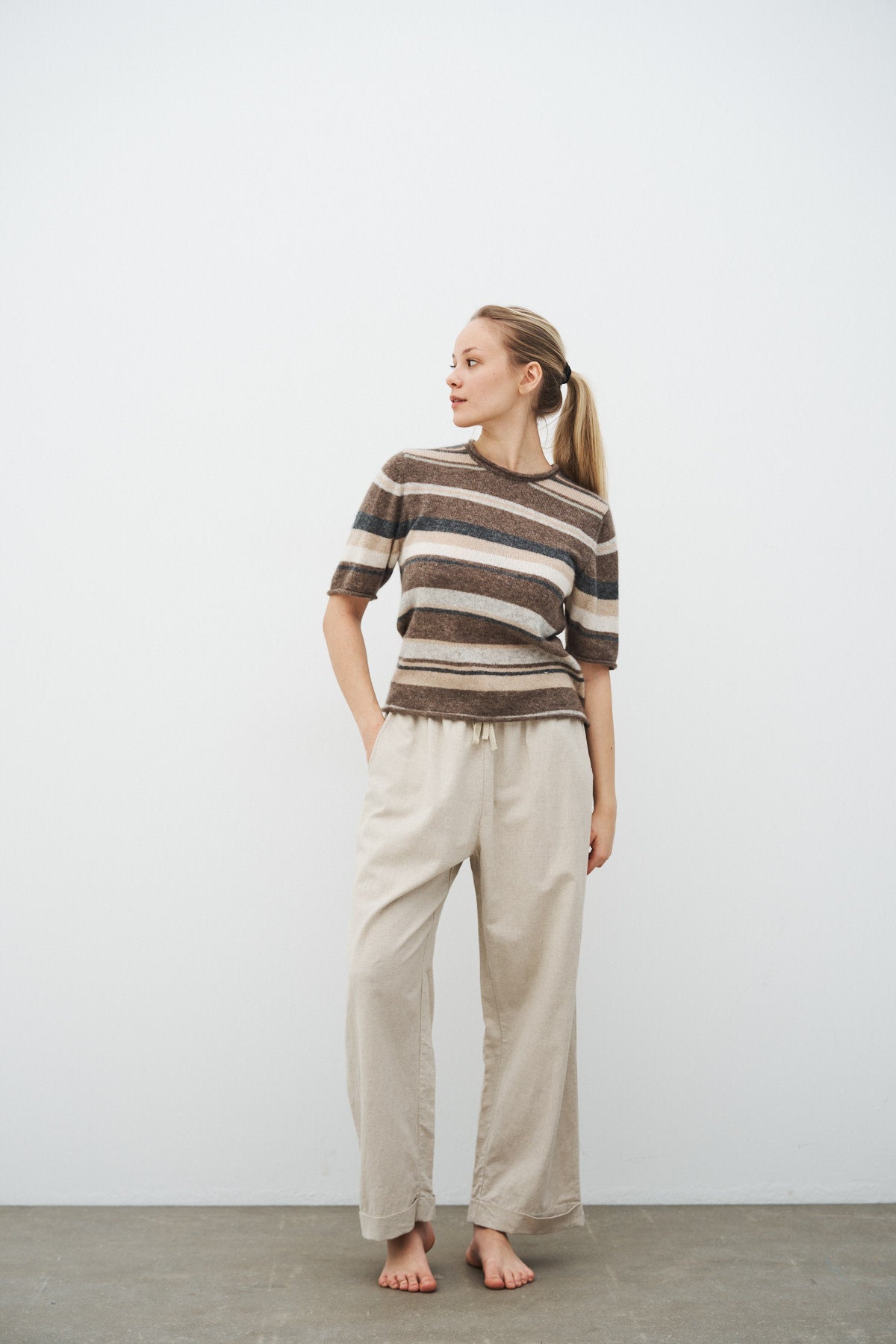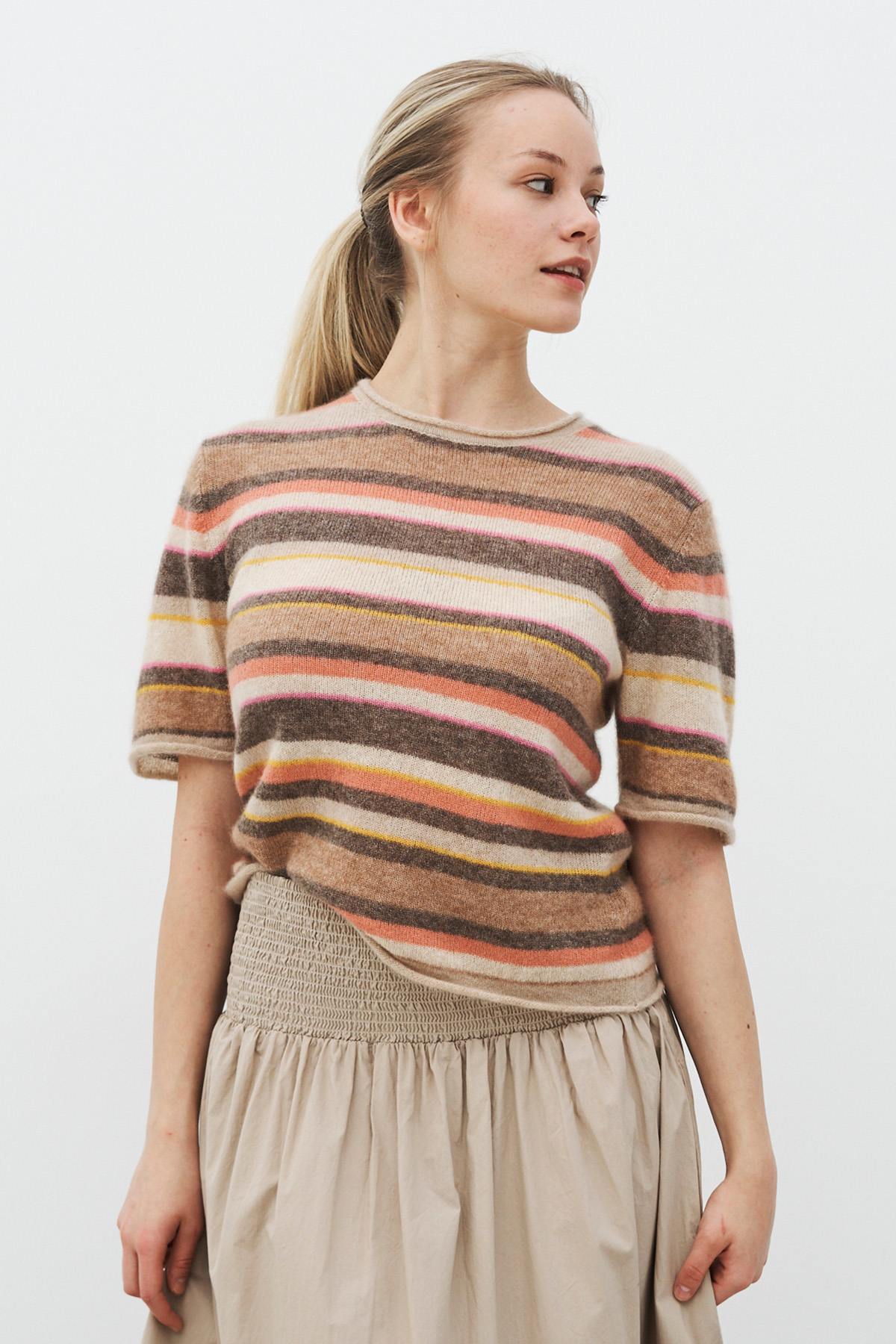 Cool T-shirt med horisontale striber fremstillet i den blødeste blanding af cashmere og silke.