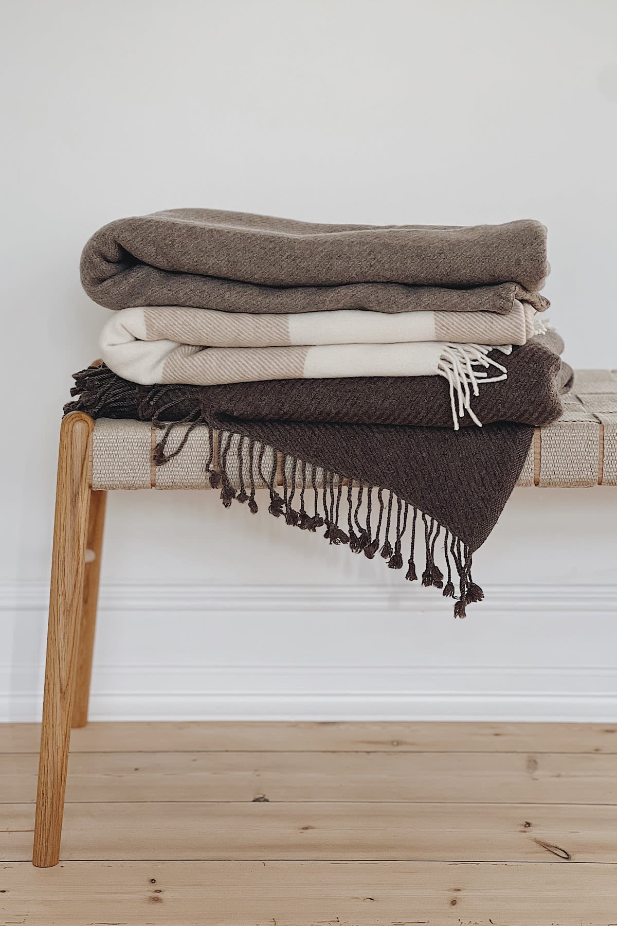 De er silkebløde og kradser ikke, hvilket gør dem til det skønneste tæppe når der skal hygges i sofaen.De er alle vævet i klassisk hanefjedsmønster, som giver dem et eksklusivt og elegant udtryk.